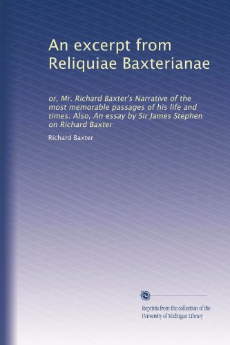 | 38. An excerpt from Reliquiae Baxterianae: or, Mr. Richard Baxter's Narrative of the most memorable passages of his life and times. Also, An essay by Sir James Stephen on Richard Baxter by Richard Baxter | |