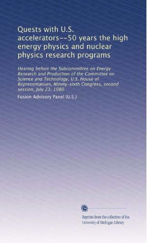 | 24. Quests with U.S. accelerators--50 years the high energy physics and nuclear physics research programs: Hearing before the Subcommittee on Energy Research ... Congress, second session, July 23, 1980 by Fusion Advisory Panel (U.S.) | |